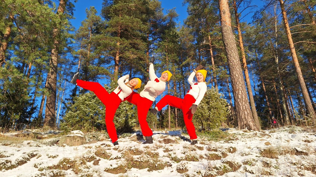 “Hiphip, hophop, tipitipi, lumituli, jummijammijuu, LUMIJAMIT jabadabaduu!”
